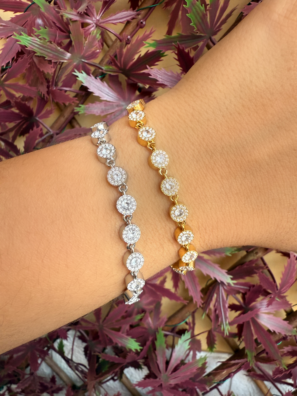 Bracciale in acciaio inossidabile con pietre rotondi con zirconi e strass.