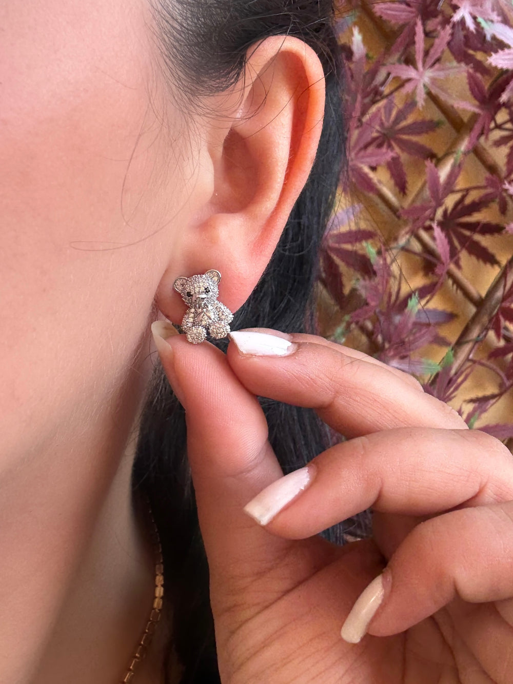 Orecchini al lobo con orsetto tempestato di strass.