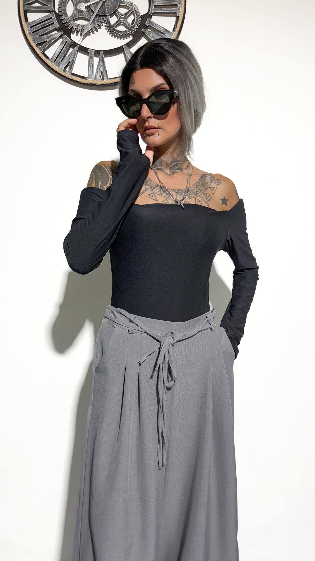 Body elasticizzato taglia unica. Manica a guanto.