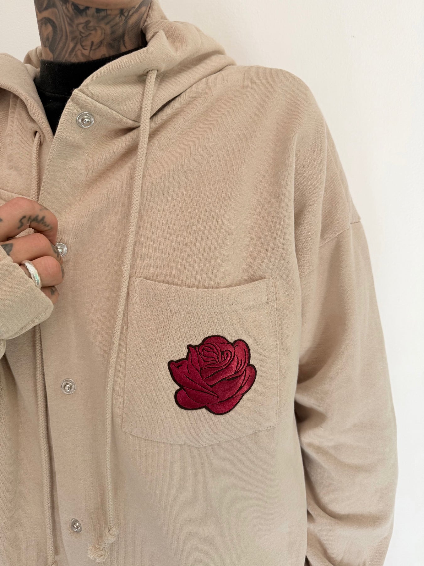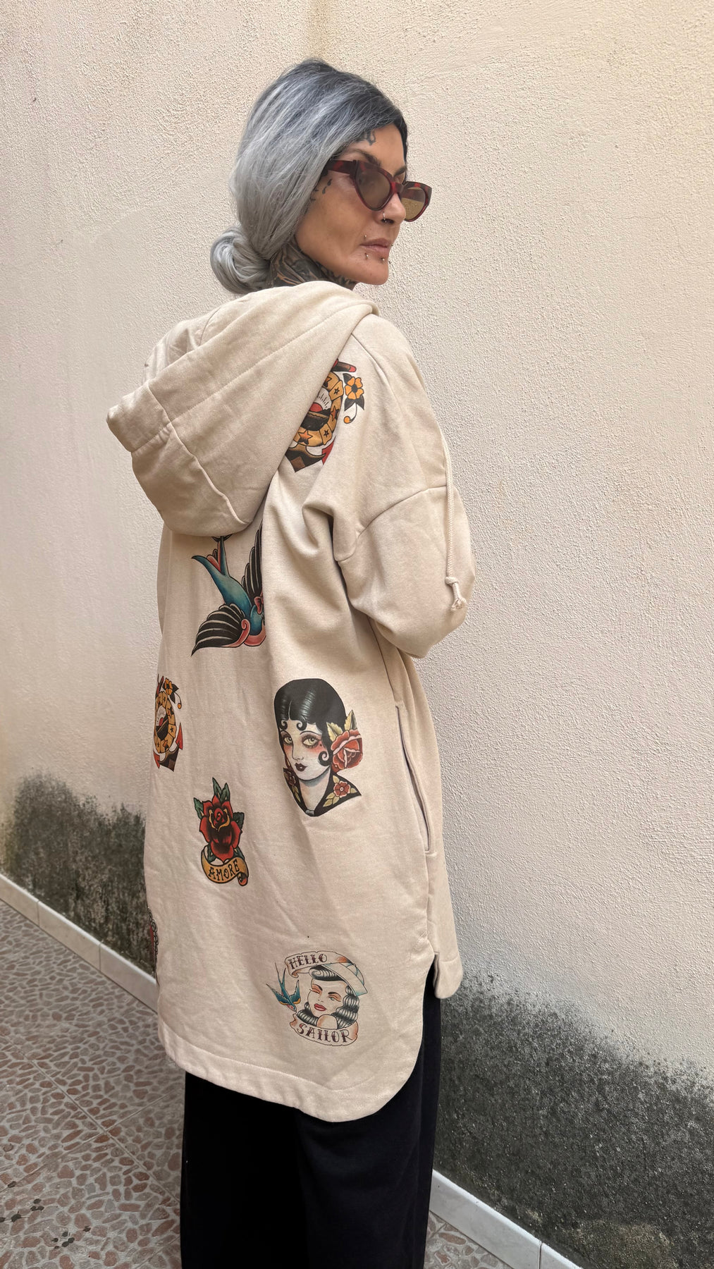 A rendere unico questo capo sono i brillantini applicati su tutta la superficie, che creano un effetto luminoso e glamour senza rinunciare all’anima urban del capo.